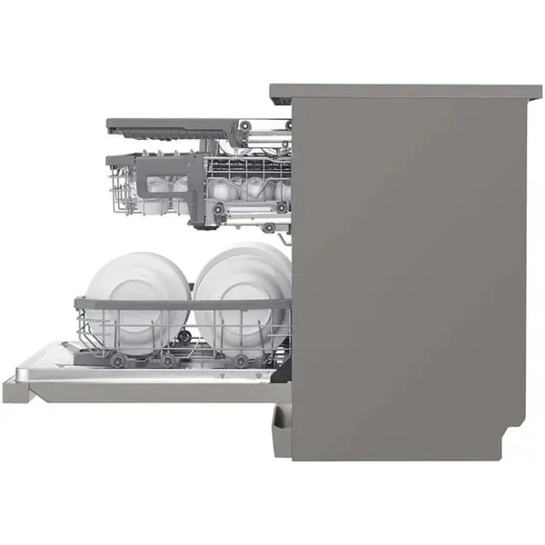 همچنین، دستگیره توکار ماشین ظرفشویی 14 نفره ال جی به آن ظاهری ساده و مینیمال داده است، که با دیگر جزئیات مدرن دستگاه همخوانی دارد. ابعاد استاندارد با عمق 60 سانتیمتر، عرض 60 سانتیمتر و ارتفاع 85 سانتیمتر، این مدل را به انتخابی مناسب برای هر آشپزخانهای تبدیل کرده است، بدون اینکه فضای زیادی اشغال کند.